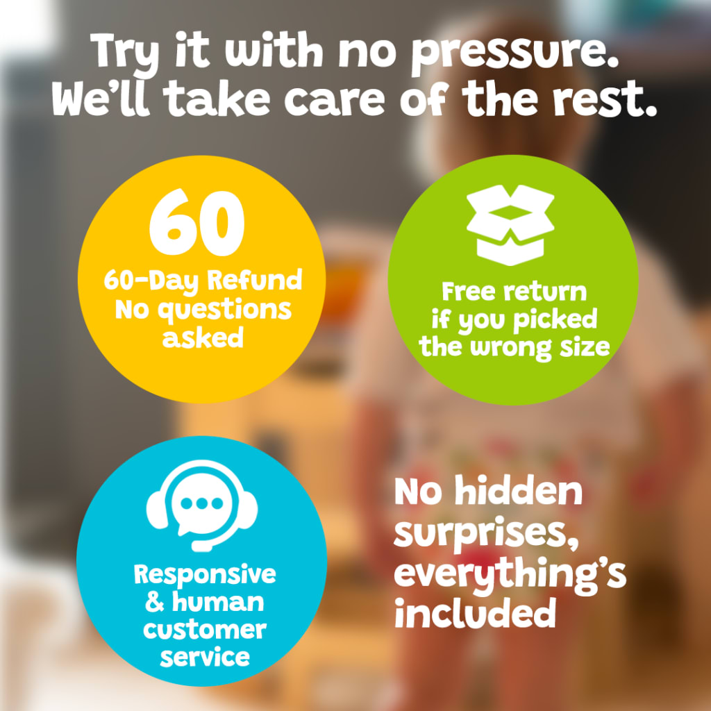 60-Night Leak-Lock Guarantee: Try at home for 60 nights. If leaks persist after fit & care steps, we’ll make it right (size exchange, replacement, or refund).